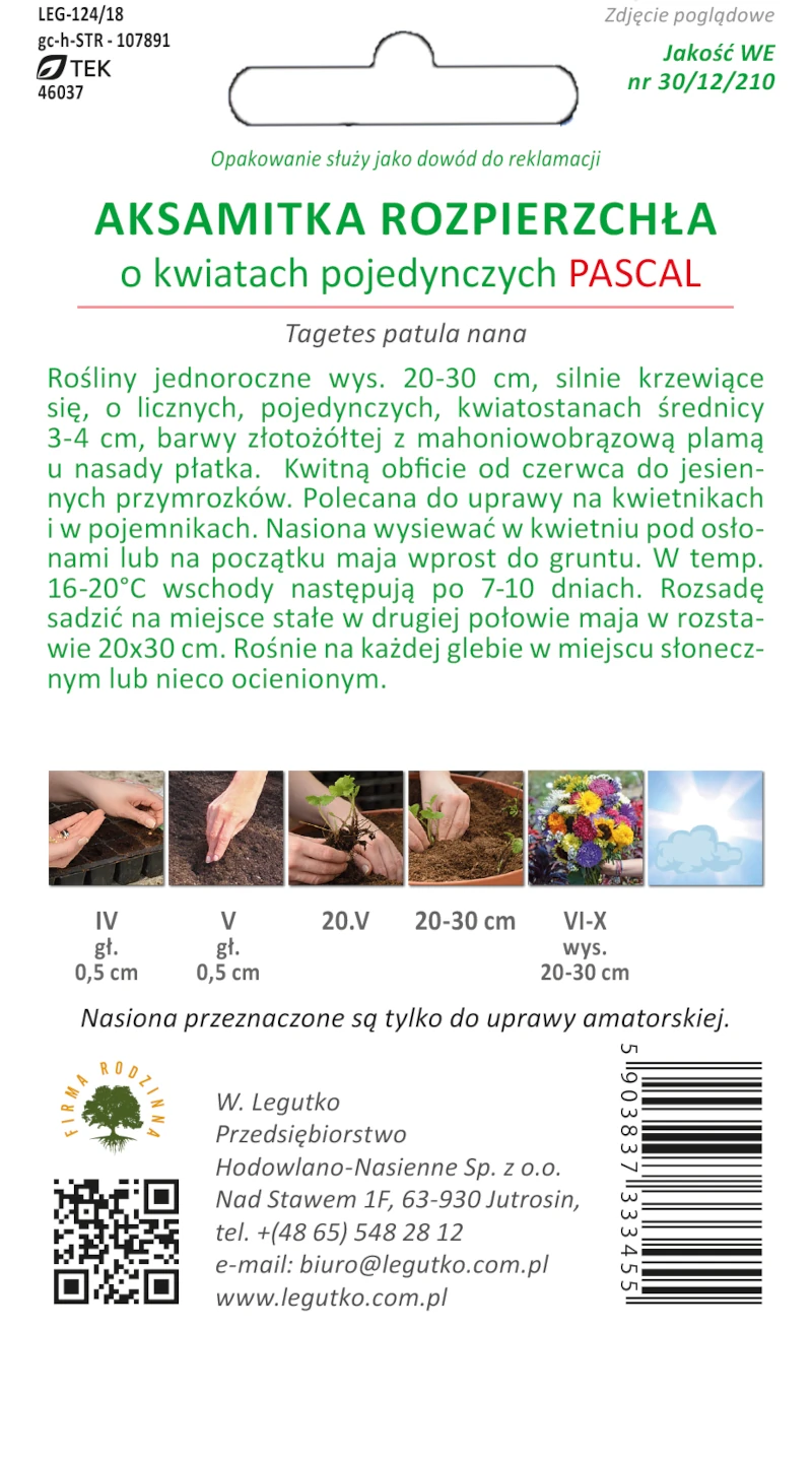 Aksamitka rozpierzchła PASCAL żółte z mahoniową plamą – nasiona