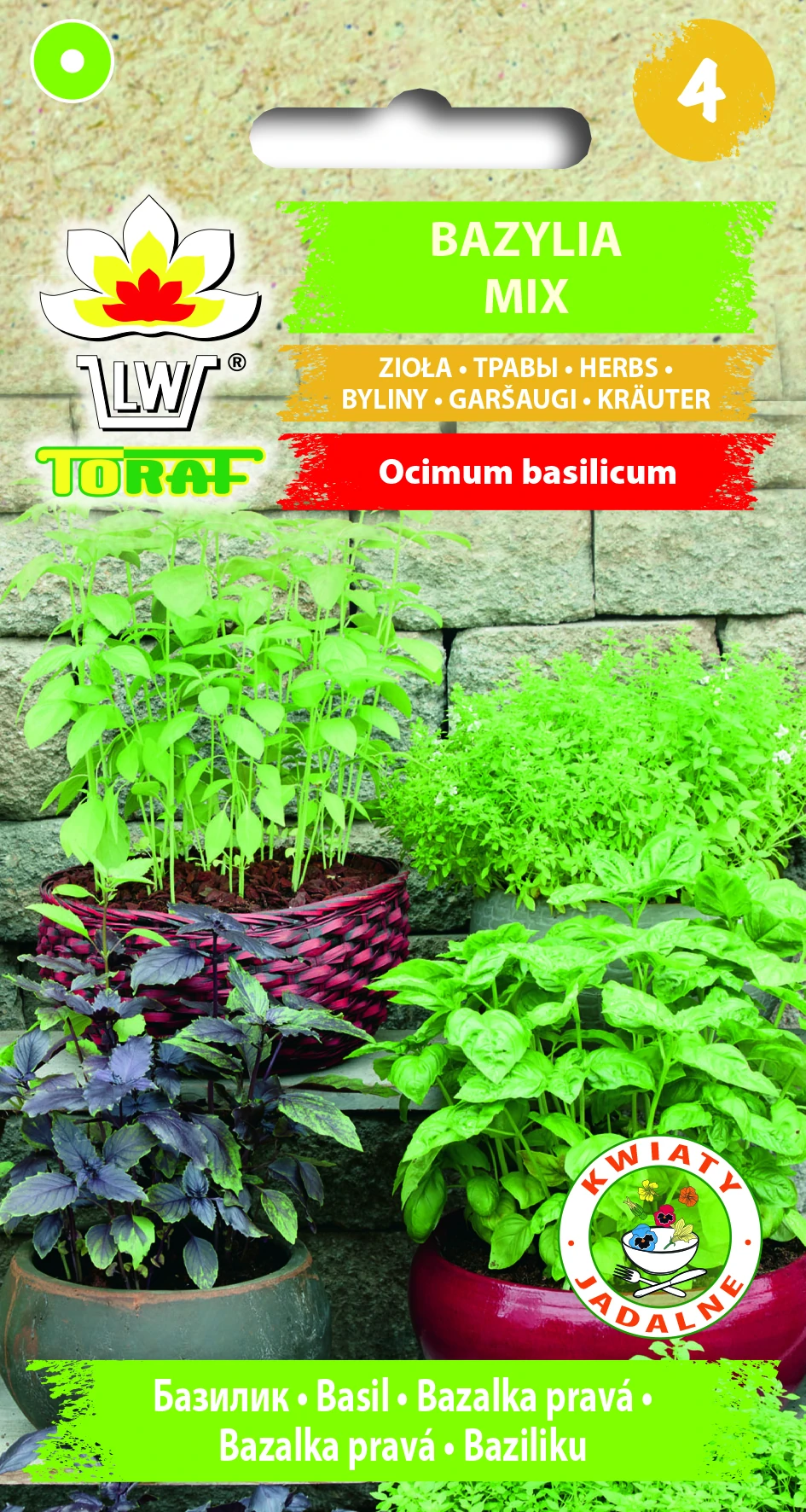 Bazylia mix to mieszanka kilku aromatycznych odmian bazylii różniących się aromatem, kształtem i ubarwieniem liści. Bardzo łatwa w uprawie, można siać bezpośrednio do gruntu w V lub do donic np. na balkon od III-IV. Liście bazylii można dodawać do potraw na surowo lub suszone. Idealnie sprawdzą się do dań kuchni włoskiej, ale również jako przyprawa do mięs, zup i sałatek.