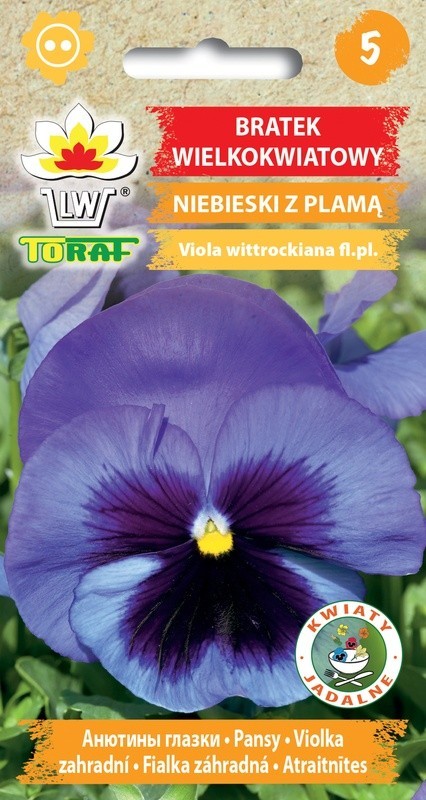 Roślina dwuletnia o pokroju zwarto-kulistym wysokości 15-25 cm, o dużych okazałych kwiatach koloru niebieskiego z plamą na dolnych płatkach. Zastosowanie: na rabaty dywanowe, kwiat cięty, kwietniki, obwódki, do pojemników i skrzynek na balkony. Wysiew nasion w maju-lipcu na rozsadniku. Sadzenie w lipcu-październiku w rozstawie 20×30 cm.