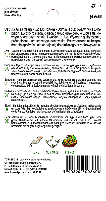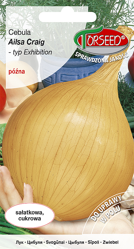 Cebula Ailsa Craig w typie Exgibition to odmiana cukrowa, szybko rosnąca, dająca bardzo duże cebule typu sałatkowego o łagodnym smaku i wadze do 1kg.