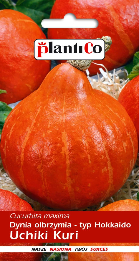 Dynia piżmowa Uchiki Kuri to odmiana dyni w typie Hokkaido, wyróżnia się intensywnie pomarańczowymi owocami o jadalnej skorce i miąższu, który jest niezwykle soczysty, smaczny i aromatyczny. Owoce nieduże, kuliste o masie ok. 1-2 kg. Płożący pokrój (3m) umożliwia czepianie się podpor. Na jednej roślinie pojawiają się najczęściej 2-3 owoce.