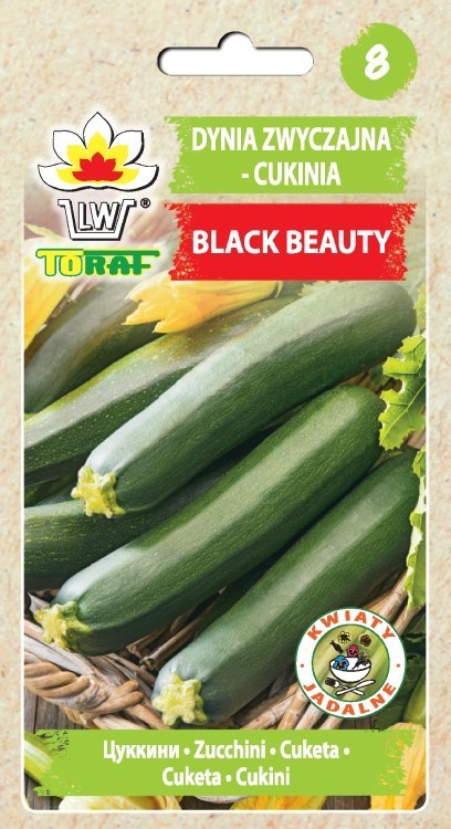 Cukinia Black Beauty to odmiana wczesna do uprawy pod osłonami i w polu. Owoce cylindryczne, kształtne wyrównane o ciemnozielonej błyszczącej skórce bez cętkowania. Wysoki plon owoców o poszukiwanych na rynku cechach. Zbiór można rozpocząć, gdy cukinie mają długość około 15-20 cm.