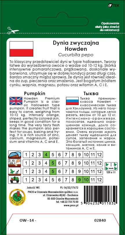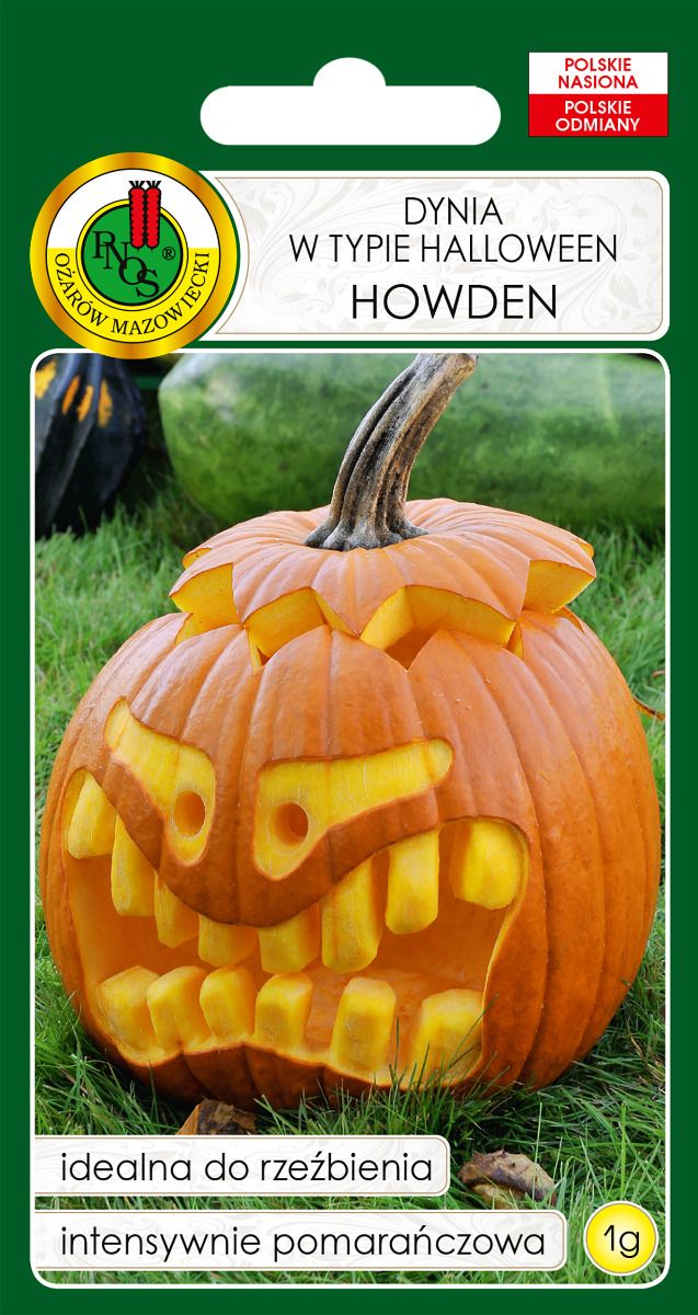 Dynia zwyczajna Howden to klasyczny przedstawiciel dyni w typie Halloween. Tworzy łatwe do wyrzeźbienia owoce o wadze od 10-12 kg. Skórka intensywnie pomarańczowa, prążkowana, doskonale wybarwiona, utrzymuje się w dobrej kondycji przez długi czas.