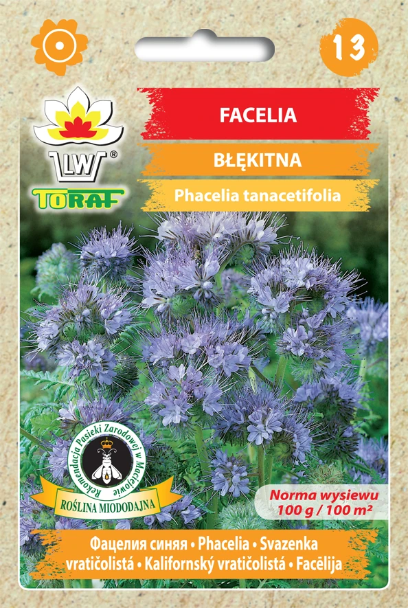 Facelia błękitna to roślina jednoroczna, miododajna – z 1ha można pozyskać około 300 do 700kg miodu. Spełnia także rolę rośliny paszowej oraz poplonowej na zielony nawóz. Poprawia strukturę u żyzność gleby, spulchnia ją oraz wzbogaca w próchnicę. Facelia ma małe wymagania glebowe jest wytrzymała na susze i przymrozki.