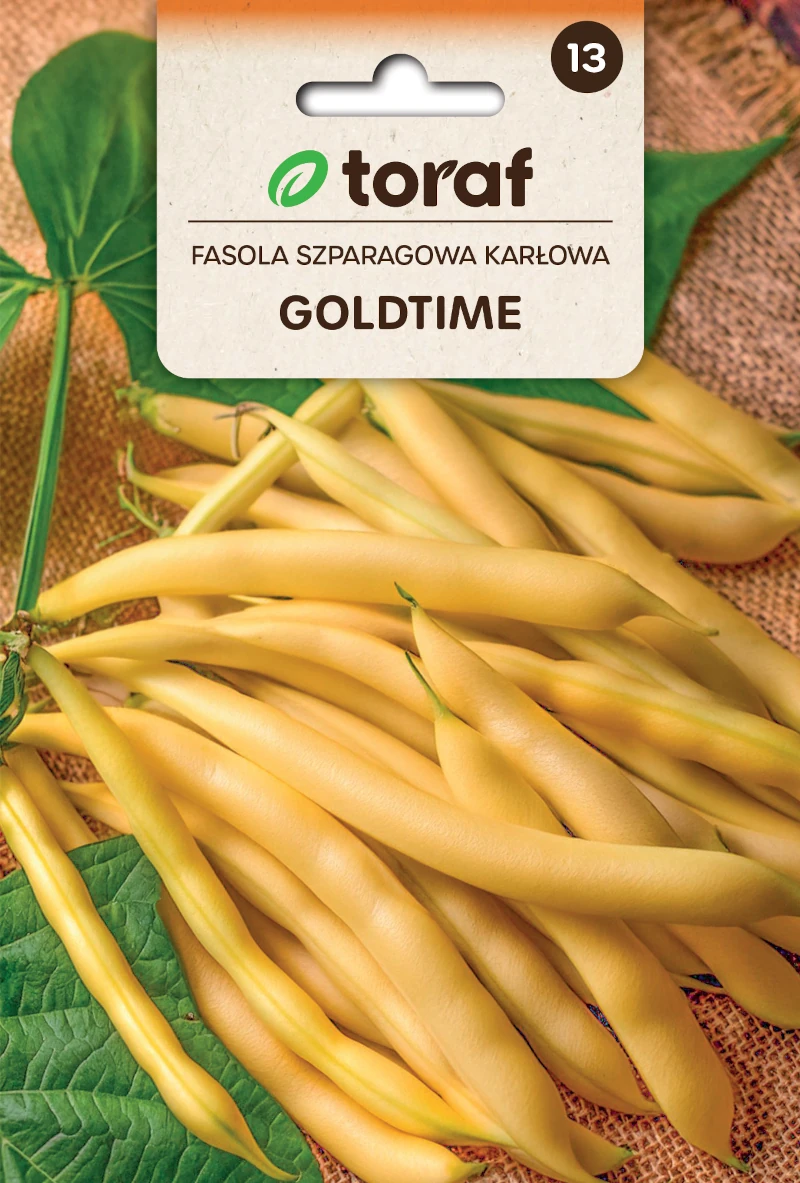 Fasola szparagowa GOLDTIME to wczesna plenna odmiana fasoli o wysokiej odporności na wirusa mozaiki. Tworzy proste, smukłe, żółte i długie (13 cm) strąki bez tendencji do tworzenia łyka. Wiąże strąki nad liśćmi, dzięki czemu jest łatwa w zbiorze zarówno ręcznym jak i maszynowym.