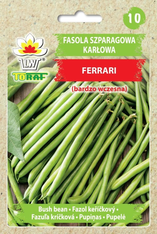 Fasola szparagowa karłowa Ferrari to bardzo wczesna, plenna odmiana fasoli, odporna na wirusa mozaiki, antraknozę i bakteriozę obwódkową. Strąki ciemnozielone, lśniące, gładkie, bez łyka o długości 12-14 cm, dojrzewają jednocześnie.