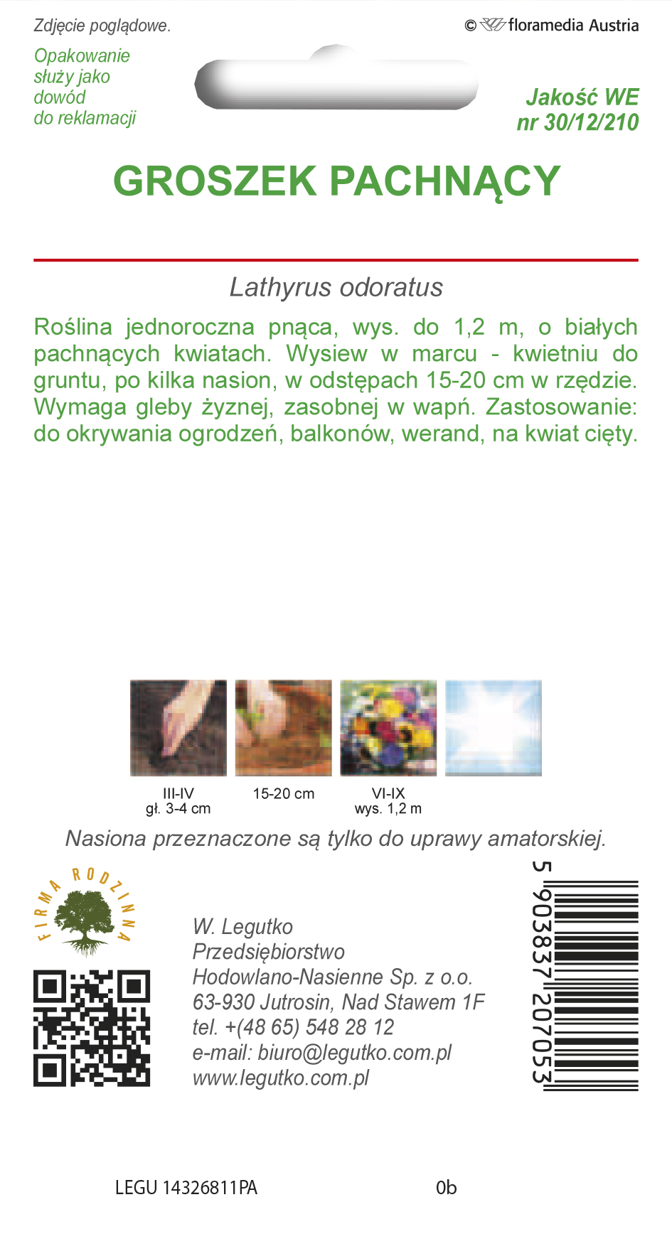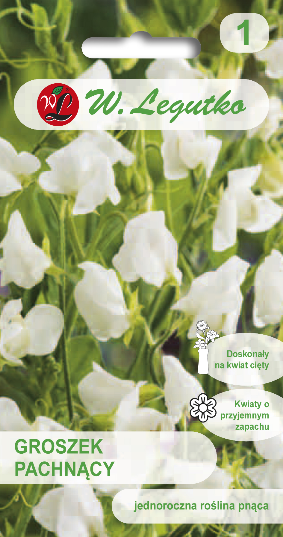 Groszek pachnący BIAŁY to roślina jednoroczna, pnąca, dorasta do wysokości 1,5m, o białych pachnących kwiatach. Wysiew w marcu-kwietniu do gruntu, po kilka nasion, w odstępach 15-20 cm w rzędzie.