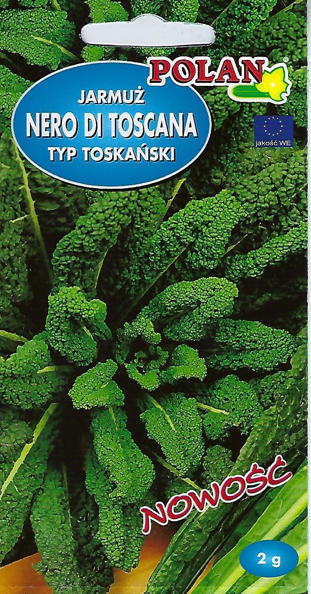 Jarmuż Nero di Toscana, zwany także „toskańskim jarmużem” lub „kapustą palmową”, to niezwykle dekoracyjna i smaczna odmiana pochodząca z Włoch. Charakteryzuje się długimi, lancetowatymi liśćmi o niemal czarnym, ciemnozielonym kolorze i intensywnej, pomarszczonej fakturze.