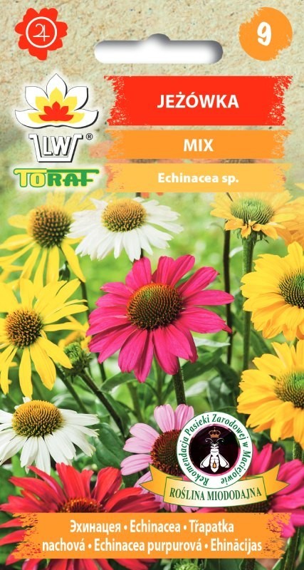 Jeżówka mix to zaskakująca mieszanka kolorystyczna znanej i lubianej byliny o okazałych kwiatach ze stożkowo wypukłym kolczastym środkiem, dorasta do 60 – 80 cm. Chętnie odwiedzana przez motyle, pszczoły. Polecana na rabaty z sąsiedztwie traw lub jako tło dla innych bylin.