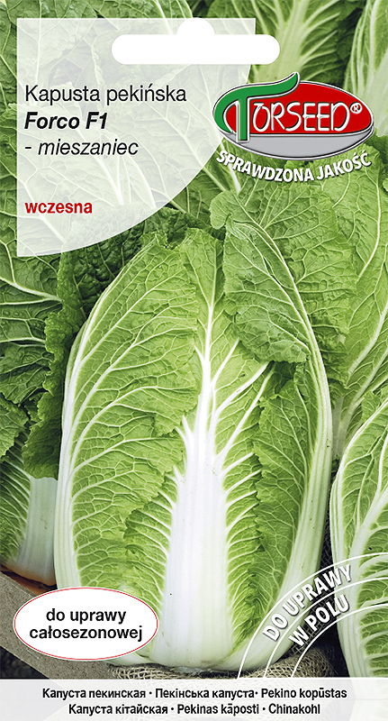 Kapusta Pekińska Forco to odmiana bardzo wczesna, wyrównana, przeznaczona do wiosennej uprawy po osłonami, agrowłókniną i w polu. Okres wegetacji wynosi 50-55 dni od wysadzenia rozsady. Tworzy jasnozielone główki o wadze 1-1,5kg.