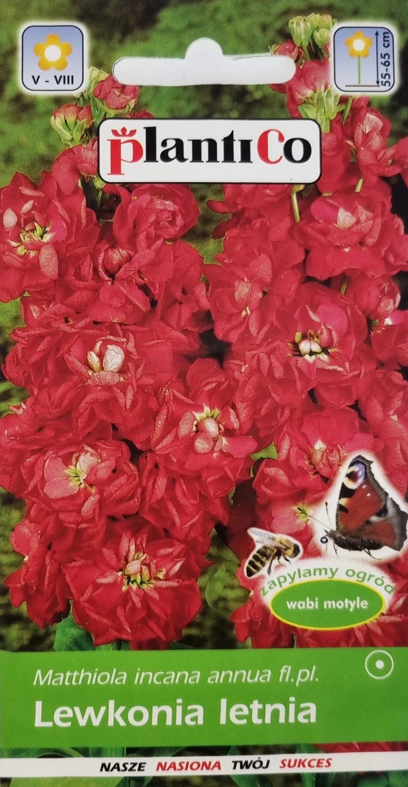 Lewkonia letnia czerwona to roślina jednoroczna wabiąca motyle, które zapylają ogród. Jednopędowa o silnie pachnących pełnych i pojedynczych kwiatach zebranych w kwiatostany – kłosy. Polecana na kwiat cięty, do wiosennego pędzenia.