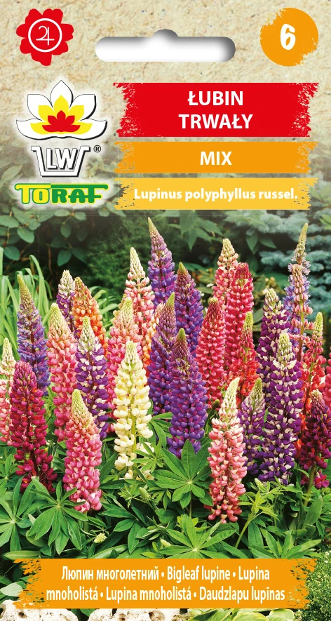 Łubin trwały to roślina wieloletnia o wielobarwnych, długich kwiatostanach w odcieniach różu, fioletu, bieli i żółtego. Pokrój rośliny zwarty, liście palczasto złożone. Kwitnie od V do VII w drugim roku uprawy. Doskonała do nasadzeń naturalistycznych i na wyższe rabaty bylinowe.
