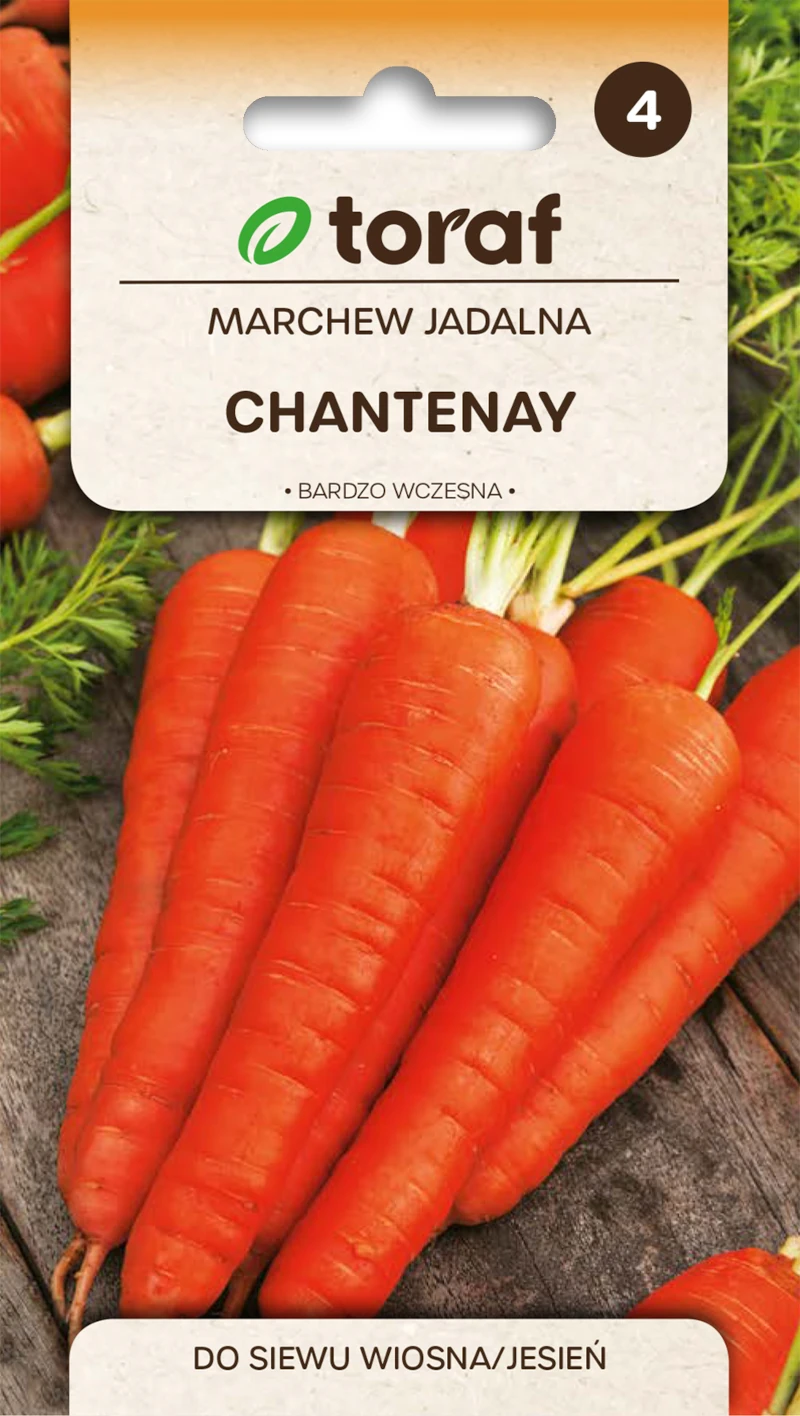 Marchew Chantenay to odmiana bardzo wczesna przeznaczona do najwcześniejszej uprawy w gruncie i pod osłonami. Polecana na uprawy na wczesny zbiór pęczkowy oraz do produkcji soku, przetworów i bezpośredniego spożycia. Tworzący stożkowate, średnio długie ciemnopomarańczowe korzenie o owalnych końcach o dużej zawartości cukru i karotenu.