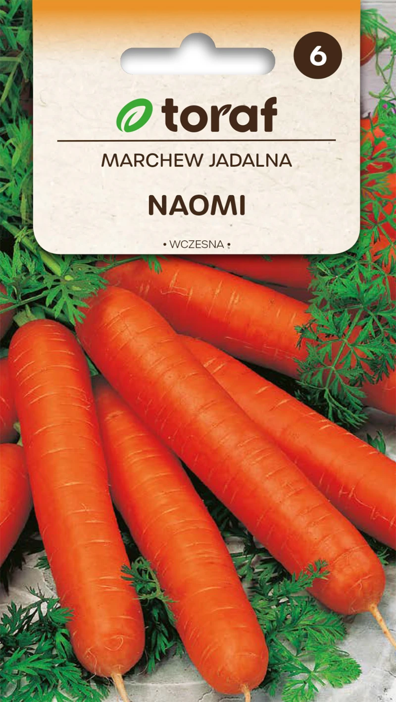 Marchew jadalna Naomi to wczesna odmiana w typie Nantes nie wykazująca tendencji do zazieleniania. Korzeń walcowaty, gładki, długości 16-20 cm, miąższ soczysty i bardzo smaczny. Odmiana przeznaczona do bezpośredniego spożycia, doskonała na soki i krótkotrwałego przechowywania.