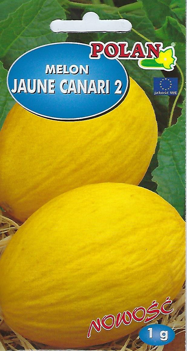 Melon Jaune Canari 2, znany również jako melon kanaryjski, to odmiana melona o charakterystycznym wyglądzie i smaku. Jego skórka jest intensywnie żółta, gładka i niekiedy lekko żebrowana, co odróżnia go od innych odmian. Wewnątrz znajduje się soczysty, kremowobiały miąższ o słodkim, delikatnym smaku i przyjemnym aromacie, przypominającym mieszankę miodu i gruszki. Melon ten jest zazwyczaj średniej wielkości, o owalnym kształcie.