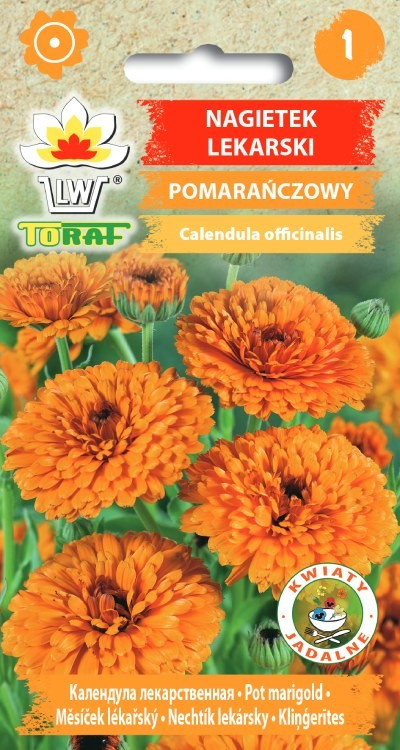 Nagietek lekarski pomarańczowy to roślina jednoroczna o wzniesionych łodygach i wyjątkowo urokliwych pomarańczowych bardzo dużych pełnych kwiatach, o średnicy 10-12 cm. Kwitnie od VI do mrozów. Uprawiana na kwiat cięty, doskonała na rabaty, obwódki i kwietniki. Udaje się na każdej, nie za suchej glebie.