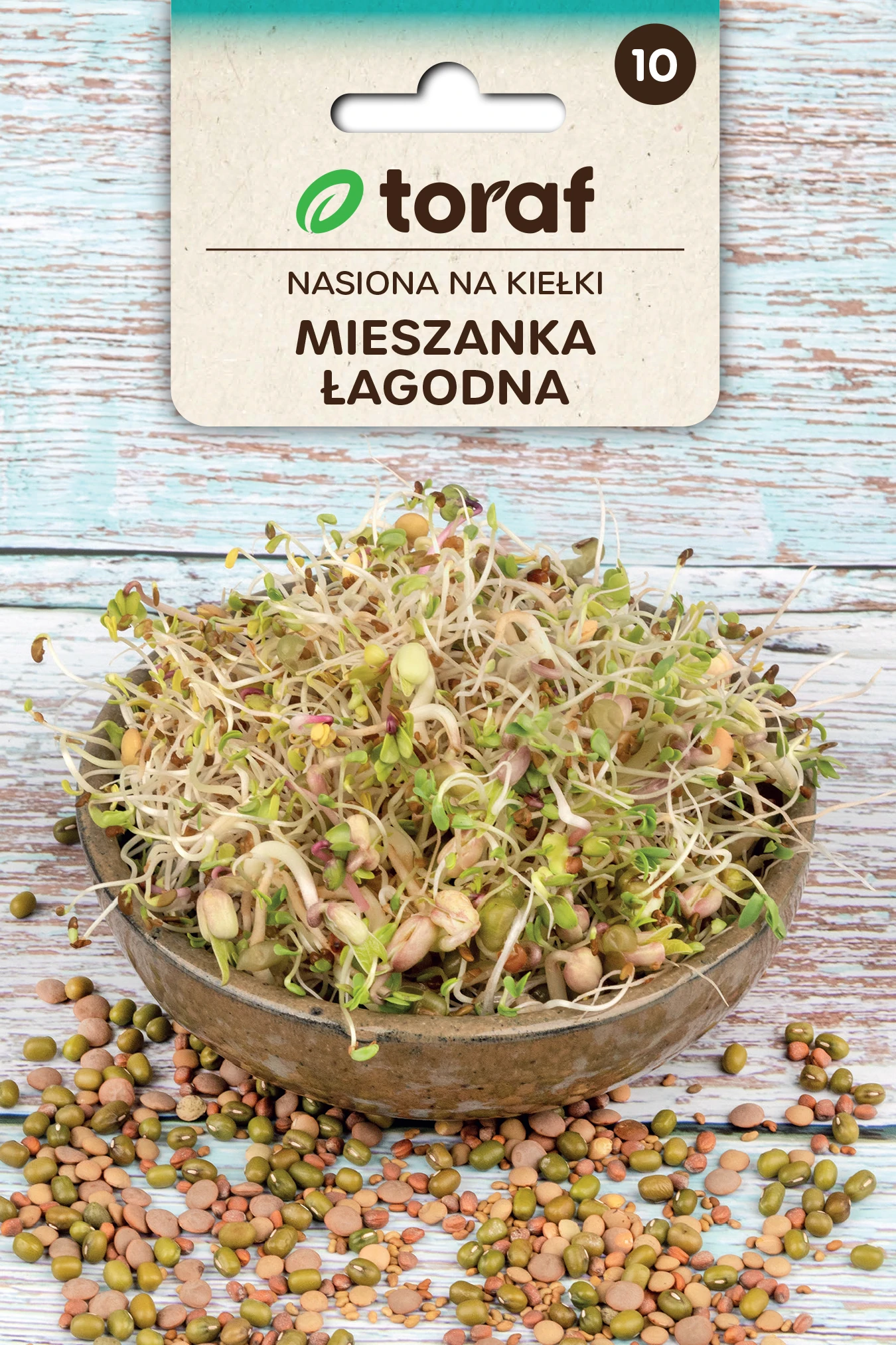 Mieszanka nasion na kiełki składająca się z gatunków tworzących łagodną kompozycję smakową. Dzięki różnorodności gatunków wchodzących w skład tej mieszanki zyskujemy w jednej porcji dużą dawkę wartościowych substancji odżywczych, soli mineralnych, aminokwasów i witamin. Zawierają duże ilości wapnia, żelaza, magnezu, potasu, siarki i wiele mikroelementów (jod, mangan, lit, selen). Regularne spożycie kiełków obniża ilość złego cholesterolu (działa antymiażdżycowo), reguluje procesy trawienne. Kiełki tej mieszanki świetnie nadają się do sporządzania surówek, sałatek lub jako dodatek do kanapek.