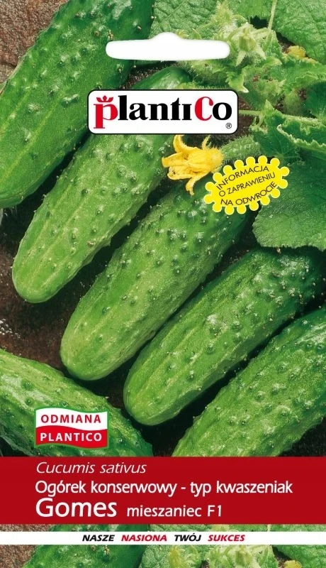 Ogórek konserwowy Gomes mieszaniec to odmiana średnio wczesna, bardzo plenna. Owoce ciemnozielone ze słabo widocznymi smugami oraz dużymi białokolcowymi brodawkami. Stosunek długości do szerokości 3:1. Odporna na parcha dyniowatych i tolerancyjna na mączniaka rzekomego.