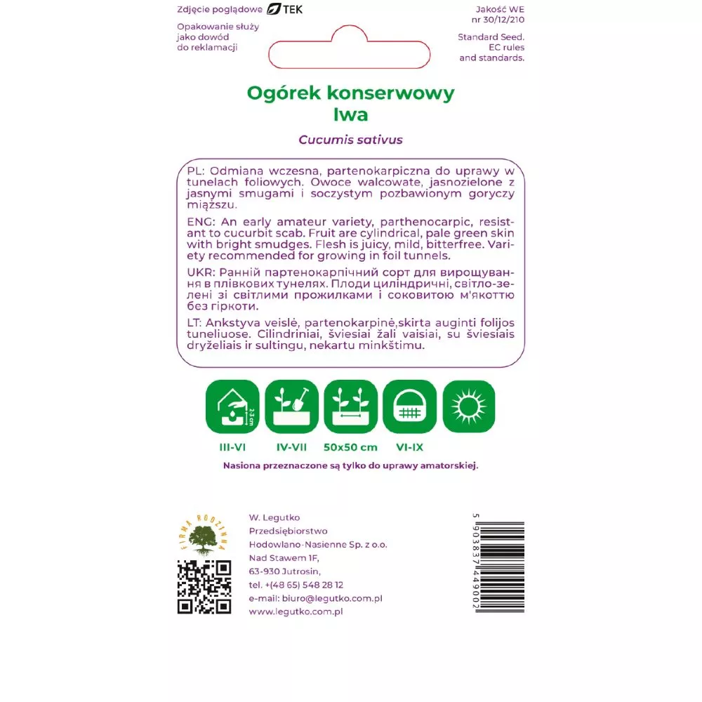 Ogórek IWA sałatkowy pod osłony partenokarpiczny – nasiona