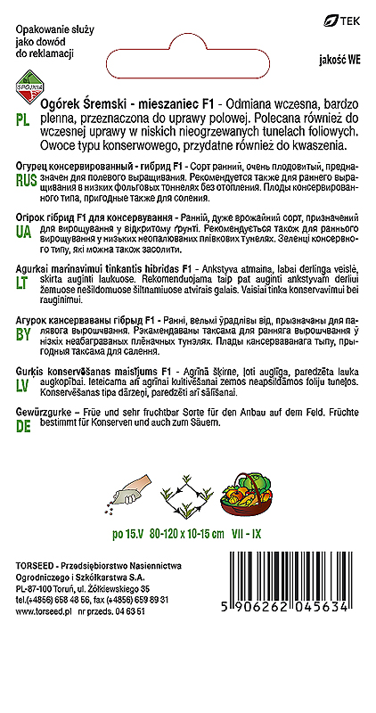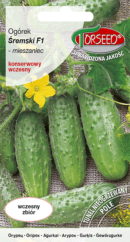 Ogórek konserwowy Śremski F1 to odmiana wczesna przydatna zarówno do kiszenia jak i konserwowania, bardzo plenna o dużej tolerancji wobec chorób. Odmiana polecana również do uprawy na wczesny zbiór pod niskie, chłodne tunele.