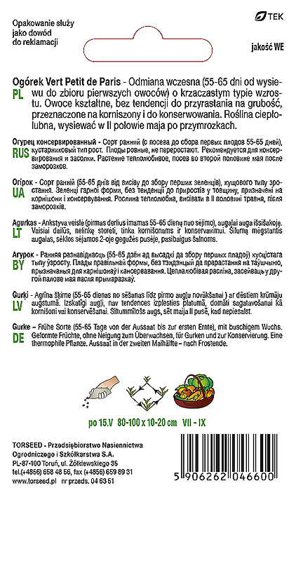 Ogórek konserwowy Vert Petit de Paris to odmiana wczesna (55-65 dni od wysiewu do zbioru pierwszych owoców) o krzaczastym typie wzrostu. Owoce kształtne bez tendencji do przerastania na grubość. Przeznaczona na korniszony i do konserwowania.