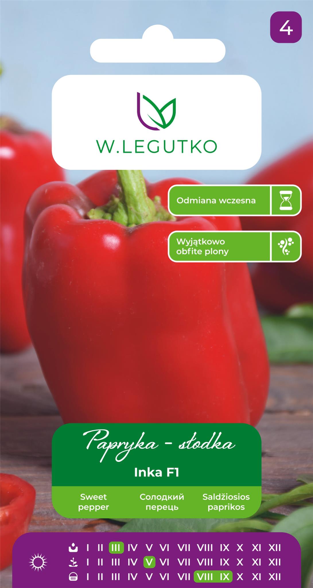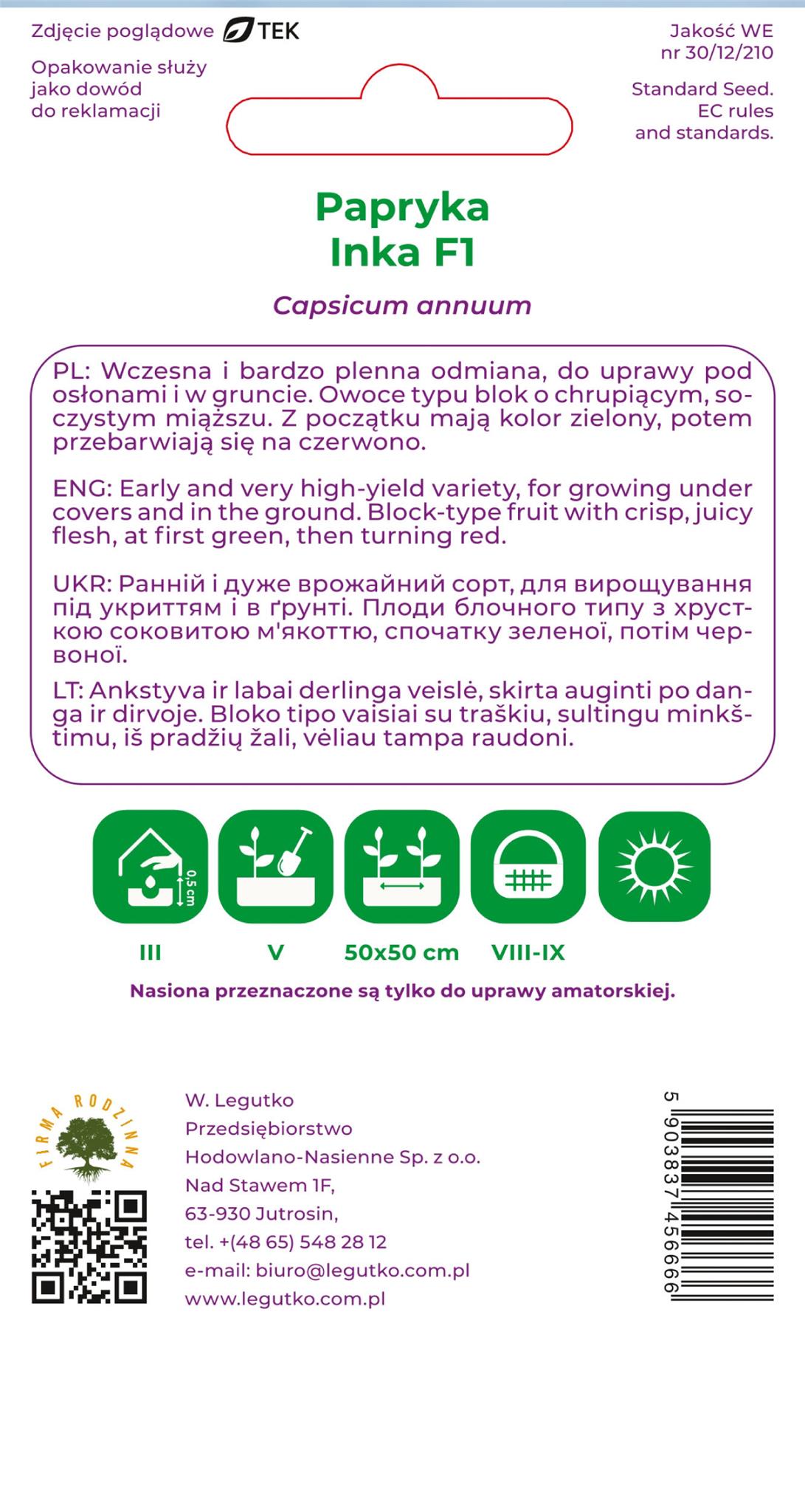 Papryka czerwona Inka to odmiana wczesna i bardzo plenna, do uprawy pod osłonami i w gruncie. Owoce typu blok o chrupiącym soczystym miąższu. Początkowo mają kolor zielony, potem przebarwiają się na czerwono.