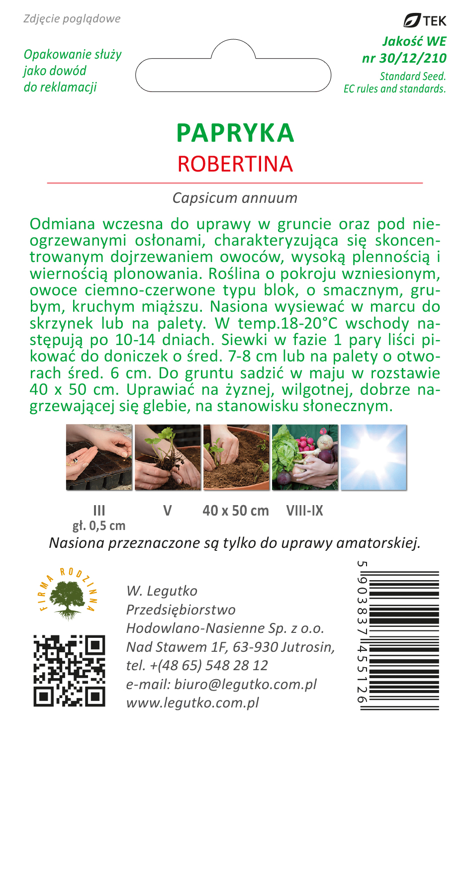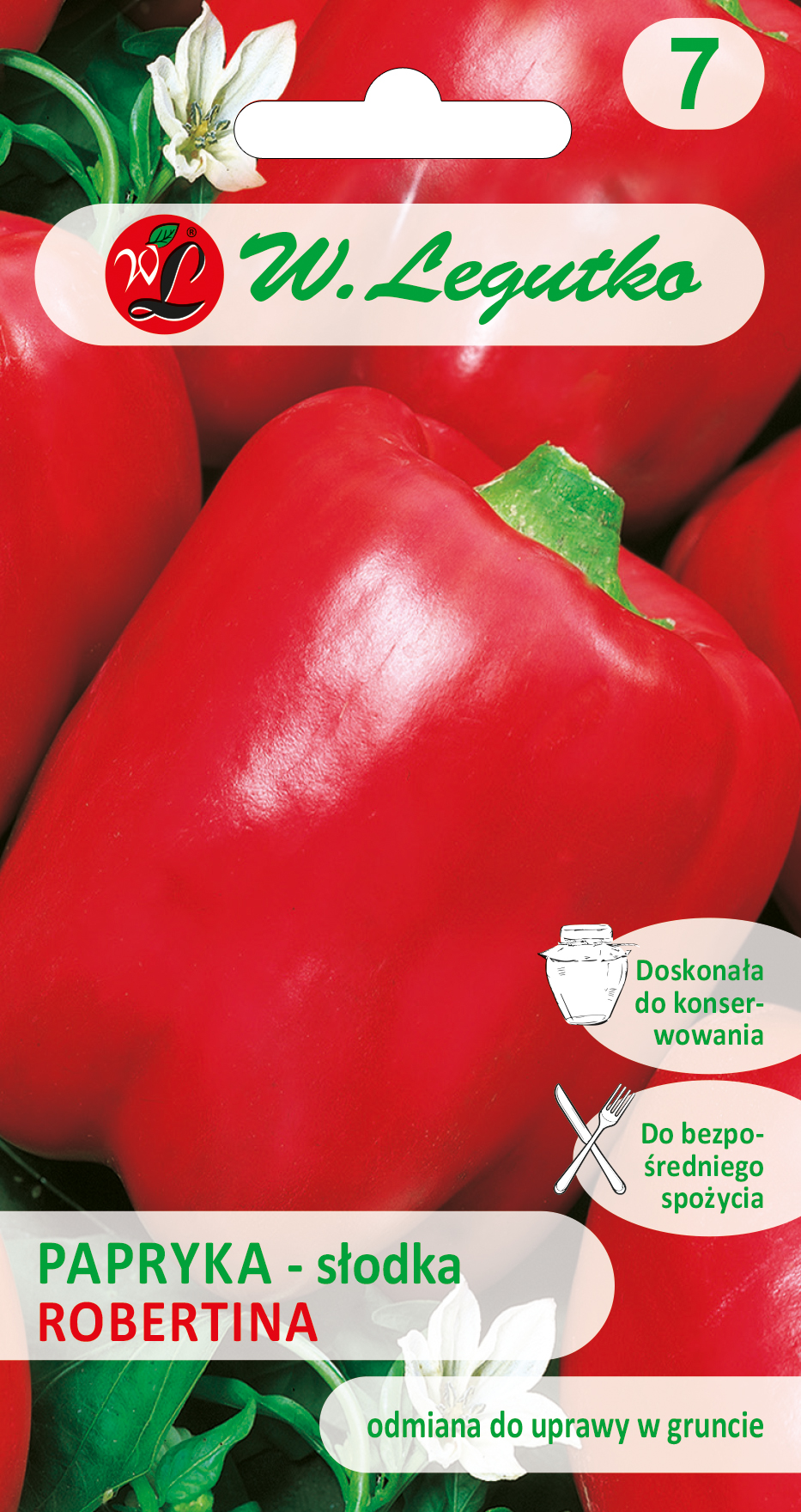 Papryka Robertina to odmiana wczesna do uprawy w gruncie oraz pod nieogrzewanymi osłonami, charakteryzująca się skoncentrowanym dojrzewaniem owoców, wysoką plennością i wiernością plonowania. Roślina o pokroju wzniesionym, owoce ciemnoczerwone typ blok, o smacznym, grubym, kruchym miąższu.