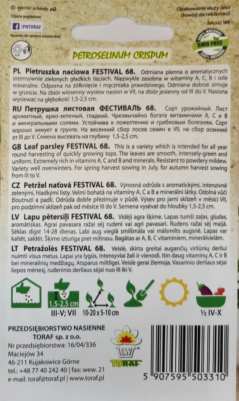 Pietruszka liściowa FESTIVAL 68 do siewu wiosna/lato – nasiona