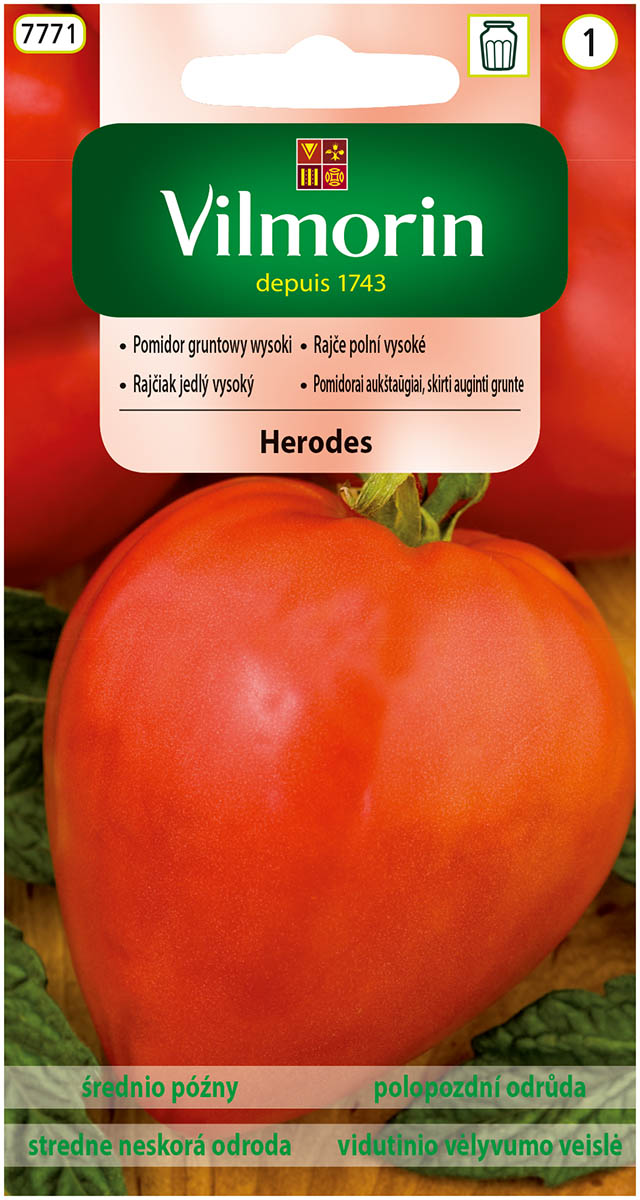 Pomidor gruntowy Herodes to odmiana średnio późna, o niekończącym się wzroście w typie bawole serce. Owoce bardzo duże czerwone.