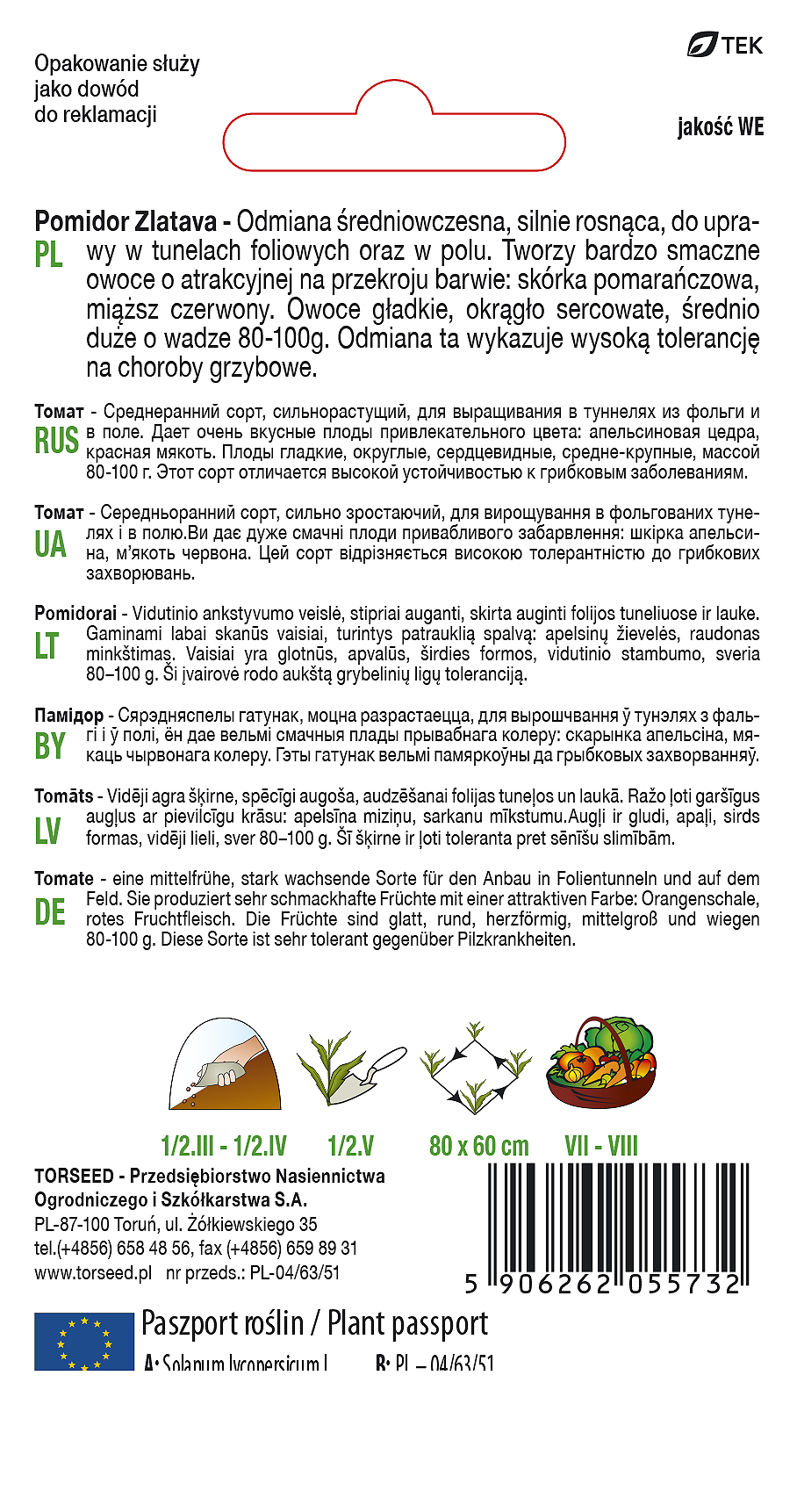 Pomidor Zlatava to odmiana średnio wczesna, silnie rosnąca, do uprawy w tunelach foliowych oraz gruncie przy palikach. Tworzy bardzo smaczne owoce o atrakcyjnej na przekroju barwie: skórka pomarańczowa, miąższ czerwony. Owoce gładkie, okrągło sercowate, średnio duże o wadze 80-100g.