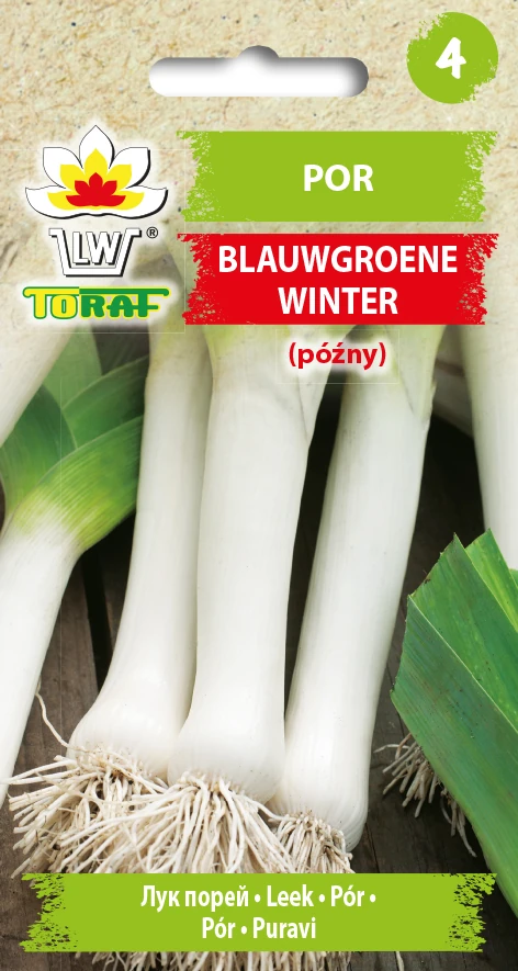 Por Blauwgroene Winter to odmiana późna, bardzo dobra do przechowywania, odporna na mrozy, dobrze zimuje w gruncie, o niebiesko-zielonym kolorze liści i długiej śnieżnobiałej wybielonej łodydze dł. 25 cm.
