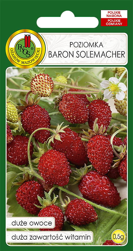 Poziomka Baron Solemacher to odmiana bezrozłogowa, powtarzająca, bardzo plenna. Owoce szeroko-stożkowate, czerwone.