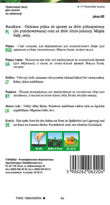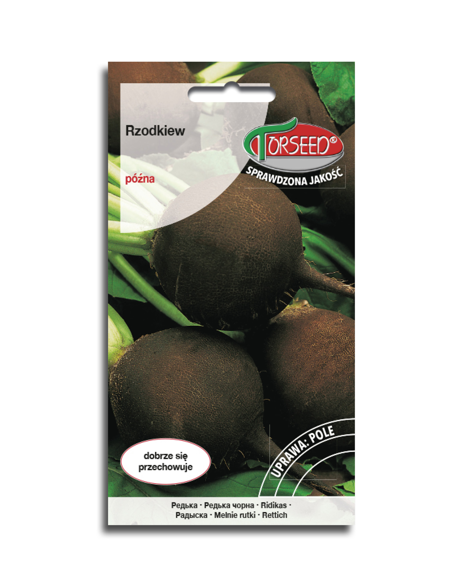 Rzodkiew czarna Runder Schwarzer Winter to tradycyjna, późna odmiana rzodkwi, szczególnie ceniona za intensywny smak, wysoką trwałość i odporność na zimowe warunki. Jej korzenie są okrągłe, średniej wielkości, o charakterystycznej, głęboko czarnej skórce, która naturalnie chroni miąższ. Biały miąższ korzenia jest soczysty, kruchy i ma wyrazisty, ostry smak, doskonale sprawdzający się w kuchni oraz w medycynie naturalnej.