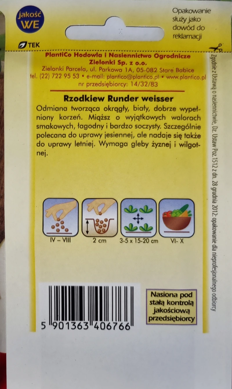 Rzodkiew RUNDER WEISSER biała soczysta łagodna – nasiona