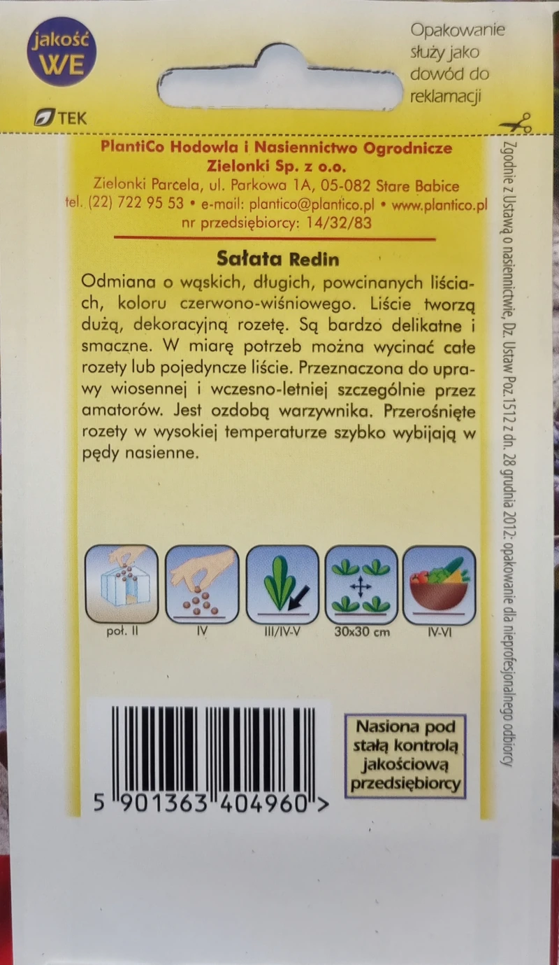 Jest to odmiana o szybkim wzroście, idealna do zbioru zarówno całych rozet, jak i pojedynczych liści. Redin dobrze rośnie na stanowiskach słonecznych, w żyznej i wilgotnej glebie. Łatwa w uprawie, odporna na wybijanie w pędy kwiatostanowe, nadaje się do uprawy przez cały sezon. To doskonały wybór dla miłośników kolorowych i zdrowych dań.