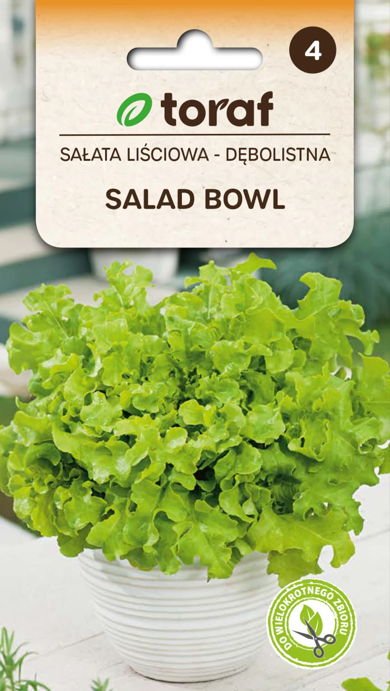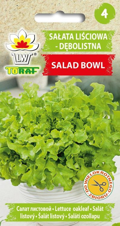 Salad Bowl to odmiana sałaty liściowej nie tworząca główek tylko ozdobną jaskrawo zieloną rozetę z liści przypominających kształtem liście dębu. Idealny dekoracyjny dodatek do surówek i sałatek o wysokich walorach smakowych i zdrowotnych. Jej apetyczne i duże liście można zbierać w miarę jej odrastania lub poprzez ścięcie całej rozety.