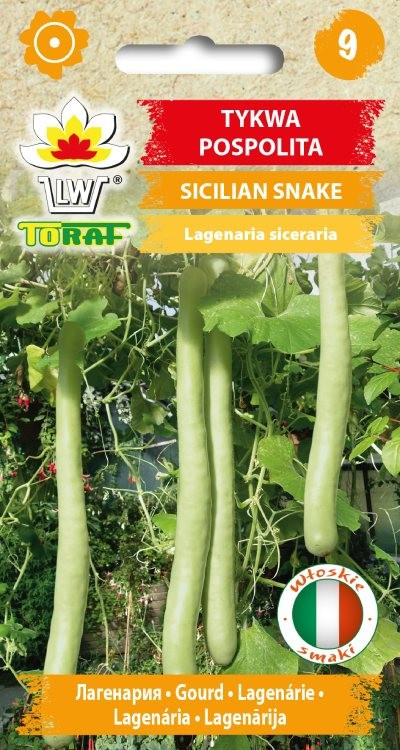Tykwa Sicilian Snake to bardzo szybko rosnące, jednoroczne pnącze, którego pędy osiągają nawet 3 metra długości. Główną ozdobą tej tykwy są długie na nawet 100 cm wijące się owoce o twardej kremowo-białej skórce przypominające kształtem węże. Idealnie nadają się do dekorowania różnego rodzaju wnętrz. Zebrane jesienią zdrewniałe owoce zachowują wartość dekoracyjną do późnej wiosny.