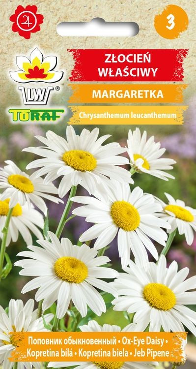 Złocień właściwy Margaretka to mało wymagająca bylina o dużych pojedynczych kwiatach barwy białej, średnicy 12-17 cm, z ozdobnymi żółtymi środkami.